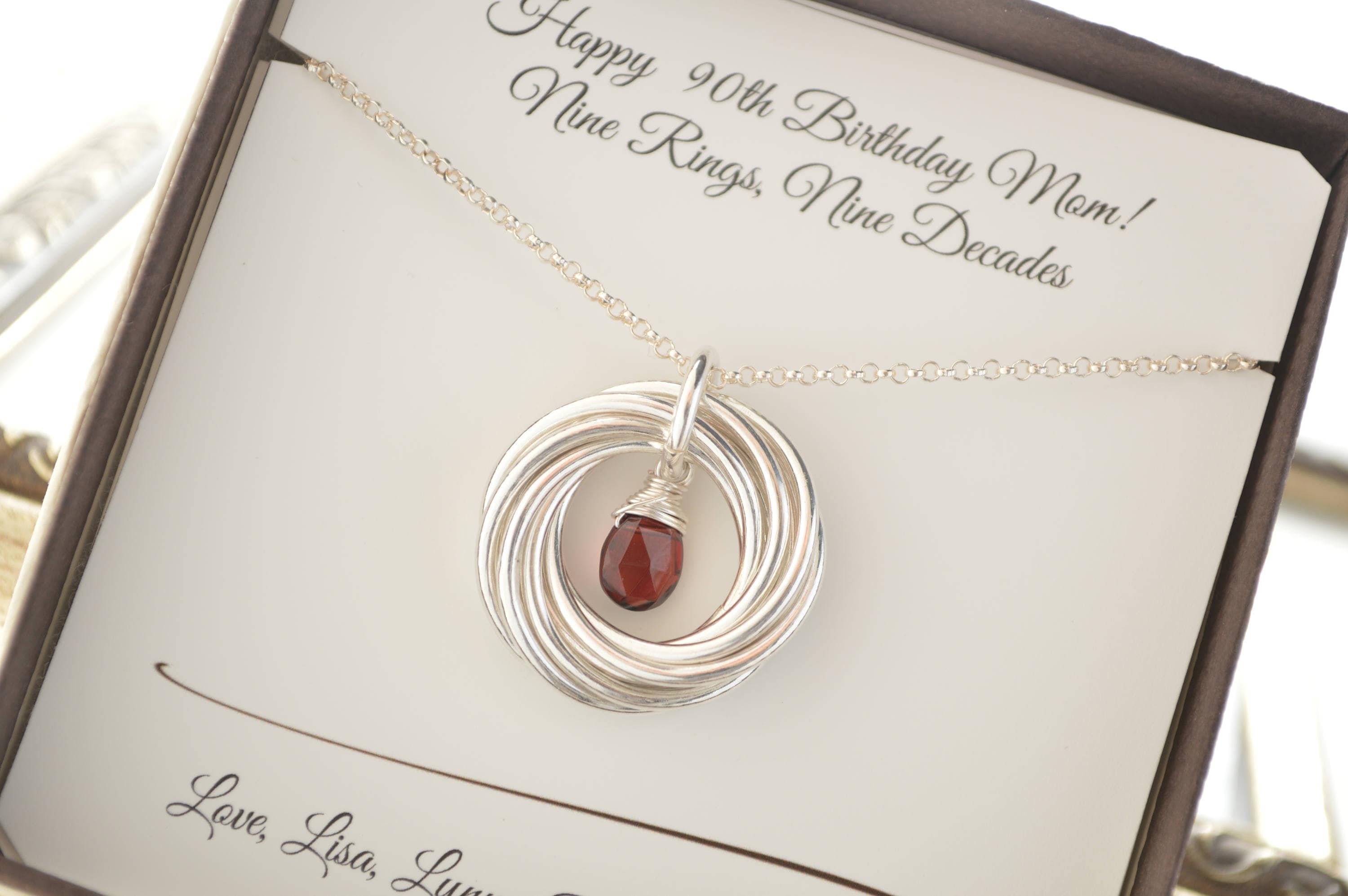 90th Birthday, moms 90th birthday, 9th Anniversary for her, Jewelry for 90 years, 90th birthday gift, January birthstone, Garnet birthstone