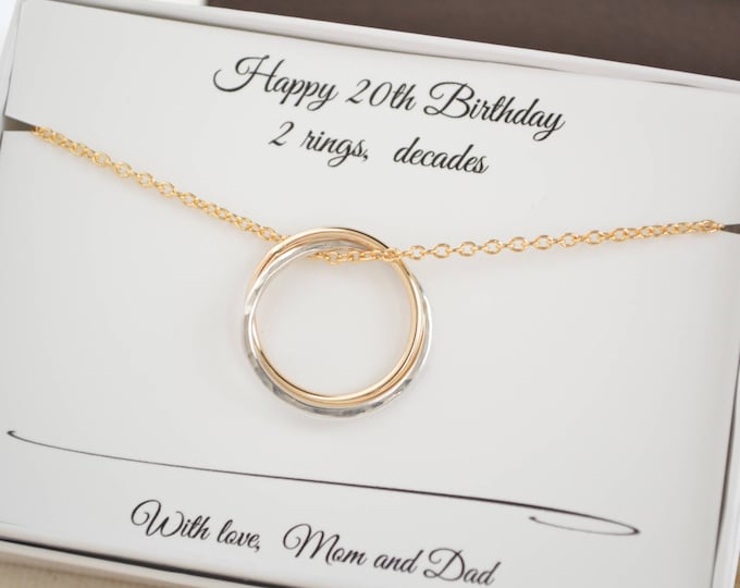 21st Birthday gift for daughter, 21 Years old necklace, 2 Rings necklace, Mixed metals rings, Petite necklace, 21st Birthday jewelry